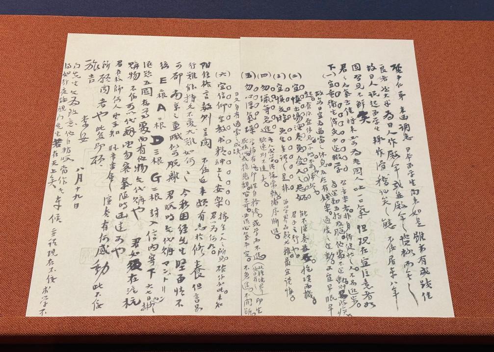 展览上展出的李叔同1917年8月19日致刘质平信。新华社记者 周润健 摄